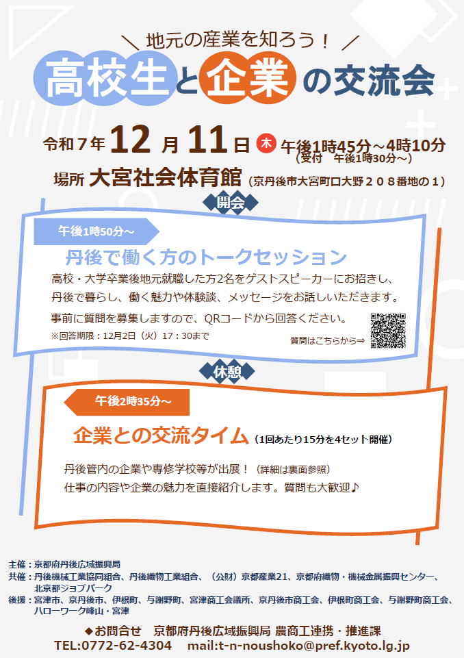 12月11日(木)に開催されます「地元の産業を知ろう!高校生と企業の交流会」に当社も参加いたします!