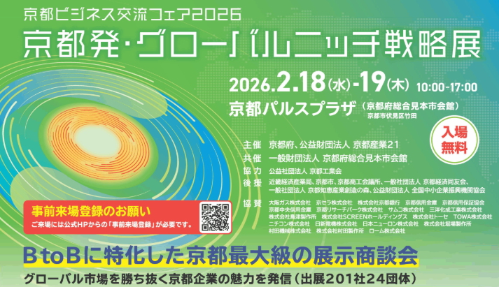 2月18日(水)~19日(木)に京都パルスプラザにて開催される「京都ビジネス交流フェア2026」に出展いたします!